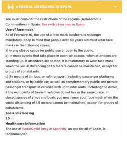 You can also find out what measures are in place for each region you are visiting during your stay in Spain.