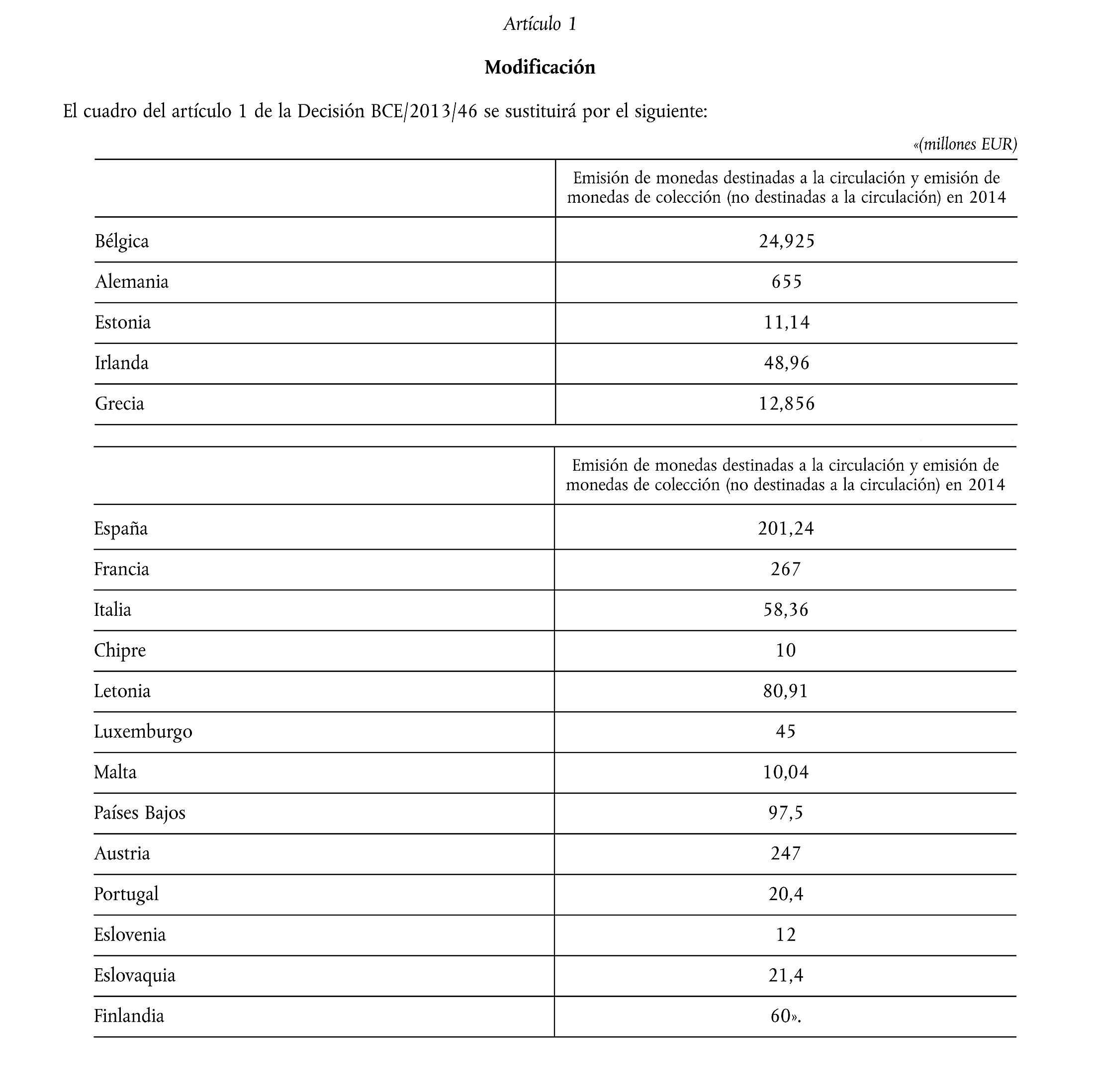 Just a little something that you might never have realised… the amount of Euro coins that have been brought into circulation in all the  different EU countries, only this year… part for colectors, part to use as currency. The amounts in the colum to the right are millions.